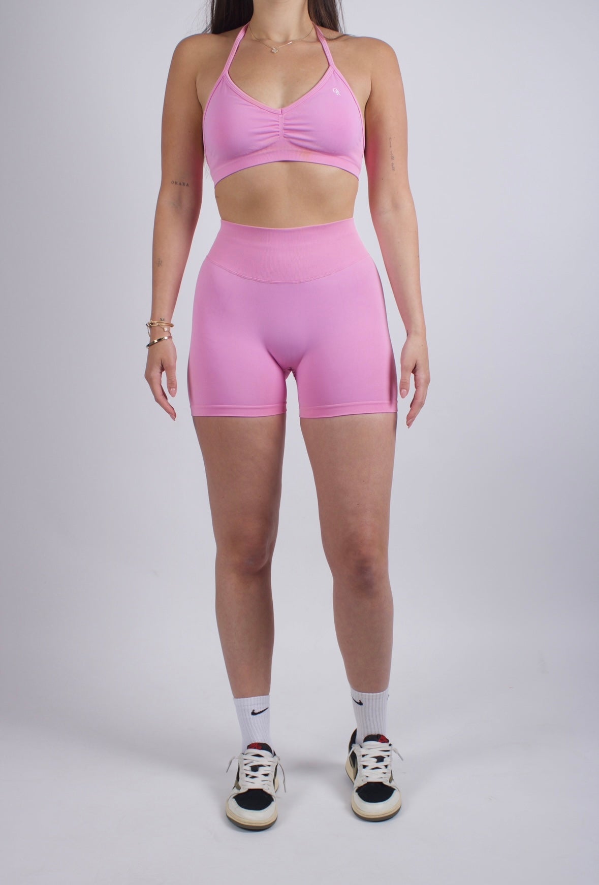 Our leggings, featuring a scrunch bum design, lift and enhance your curves, giving you a flattering and sculpted look. Paired with our supportive sports bras, designed for both comfort and style, you'll feel confident and secure during every workout.